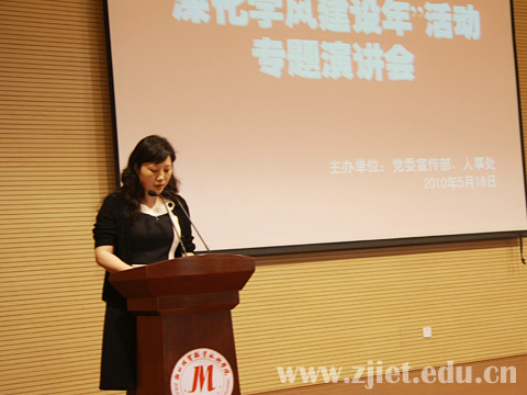 学院副院长张红在会上指出,我院开展“深化学风建设年”活动的目的在于进一步深化学风建设,教育和引导广大学生勤奋学习、积极向上,努力营造良好的学习环境,促进我院示范项目建设;而教风建设是学风建设的基础,直接决定着学院人才培养目标和发展目标能否顺利实现。张院长表示希望通过今天的演讲会,给广大教师提供一个交流和学习的平台,激励广大教师关爱学生、教书育人,进一步提高我院教师队伍的师德水平和整体素质。