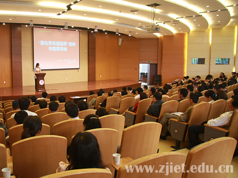5月18日下午,学院在会议中心举行“深化学风建设年”活动专题演讲会,这是学院开展“深化学风建设年”的一项具体活动。学院领导、中层干部(含助理)及全院教师参加了会议。演讲会由院团委副书记金初冬主持。