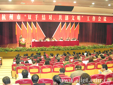 会议首先由市人大副主任陈重华宣读《关于表彰杭州市“双千结对、共创文明”活动先进集体和先进个人的决定》,会上表彰了35家先进单位、20位先进个人和5家单位组织奖。我校潘春胜同志被评为先进个人受到表彰。同时会上有杭州市建设委员会等四家单位进行了会议交流。最后由市委常委、宣传部长翁卫军作总结讲话,他对杭州市“双千结对 共创文明”活动的更好开展提出了具体要求。