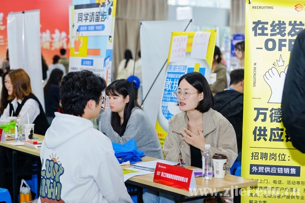 招聘现场气氛活跃,还专门设置了人才政策指导、校企合作洽谈区、基本医疗保险、法律咨询及就业指导服务体验营等特色活动。不少参会企业早早地来到现场,与各二级学院相关负责人交流用人需求,洽谈校企合作意向。就业指导服务体验营开设了“AI简历在线”“校友话就业”“导师面对面”等体验项目,邀请了浙江省大学生就业创业导师团、杭州师友计划导师、高校就业创业导师等专家现场坐诊咨询,为毕业生提供就业见习、人才政策、求职技巧、职业生涯规划、创新创业等方面的咨询服务,帮助毕业生厘清就业形势,引导毕业生树立积极求职心态,提升毕业生的求职技能和职业生涯规划能力。